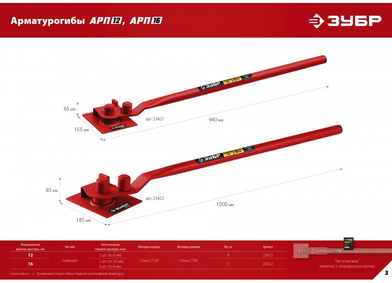 Арматурогиб Зубр АРП-12 плавный гиб [23421]