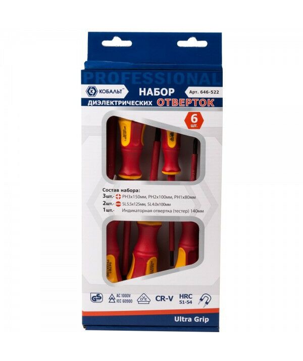 Набор отверток диэлектрических Кобальт 646-522 Ultra Grip CR-V, 6 шт, коробка