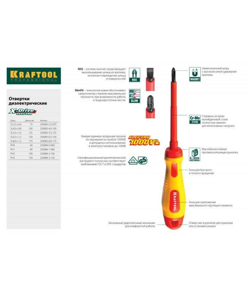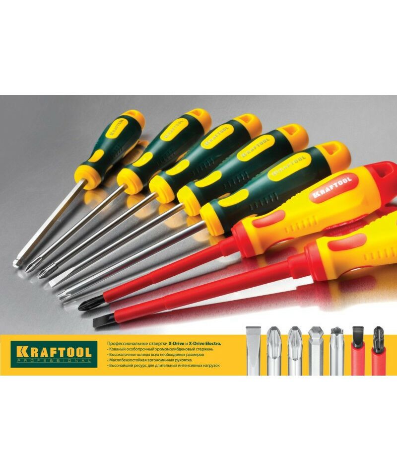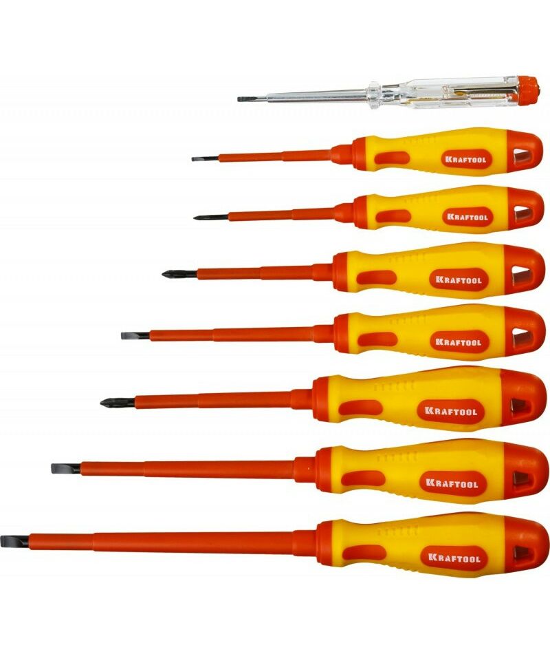 Набор высоковольтных отверток KRAFTOOL Х-Drive ELECTRO SL: 2, 5, 4, 5,5, 6,5, PH: № 0, 1, 2, пробник, до 1000В [250088-H8]