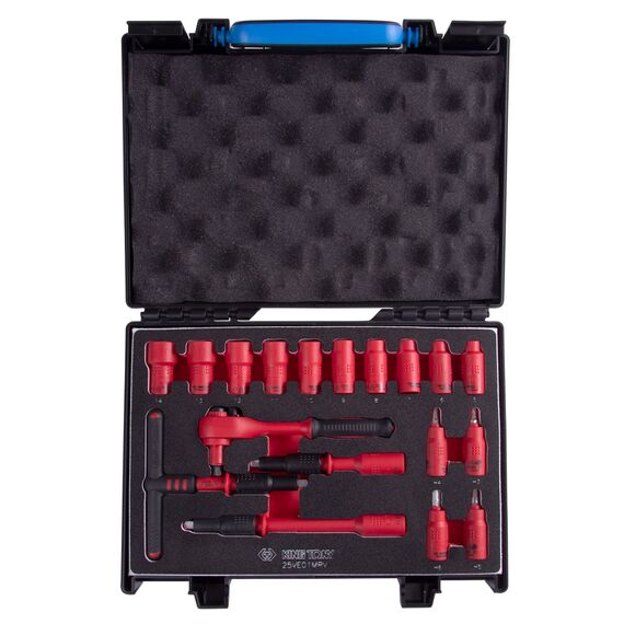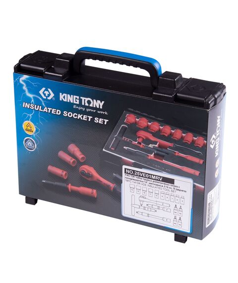 Набор торцевых диэлектрических головок с принадлежностями King Tony 25VE01MRV 1/4", шестигранные, 5-14 мм, 18 предметов