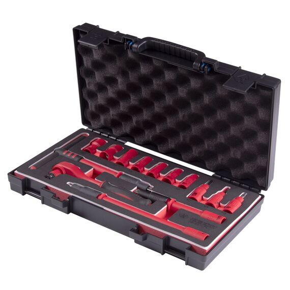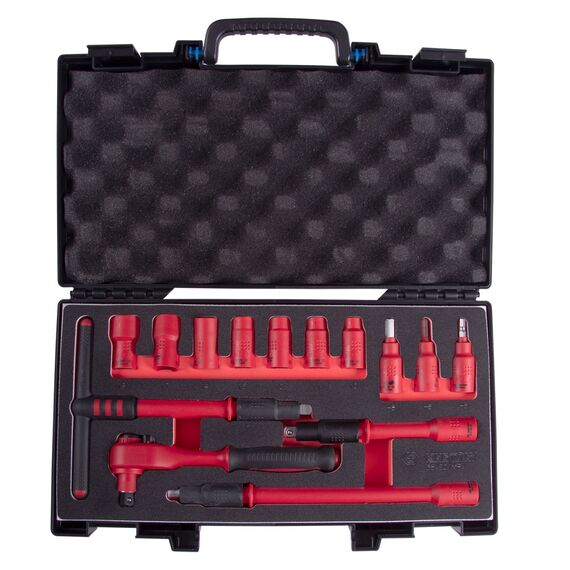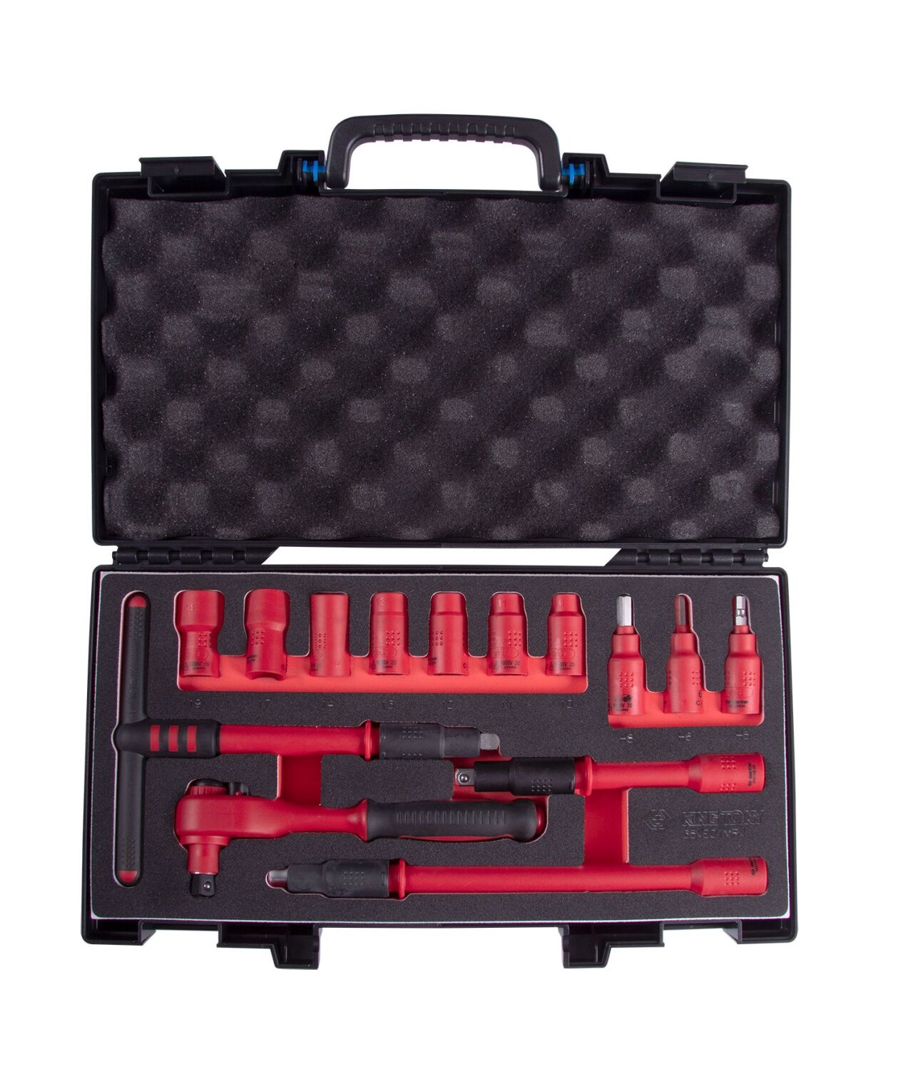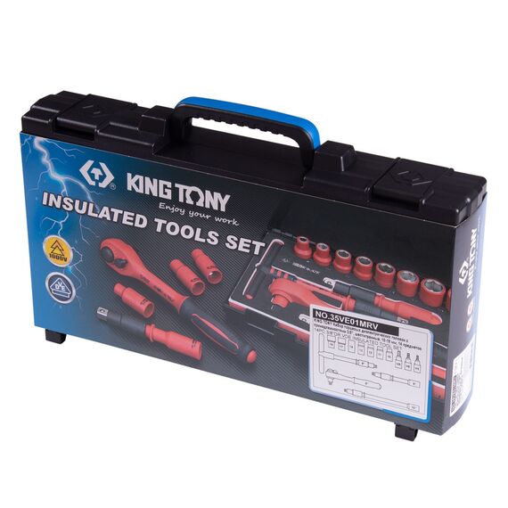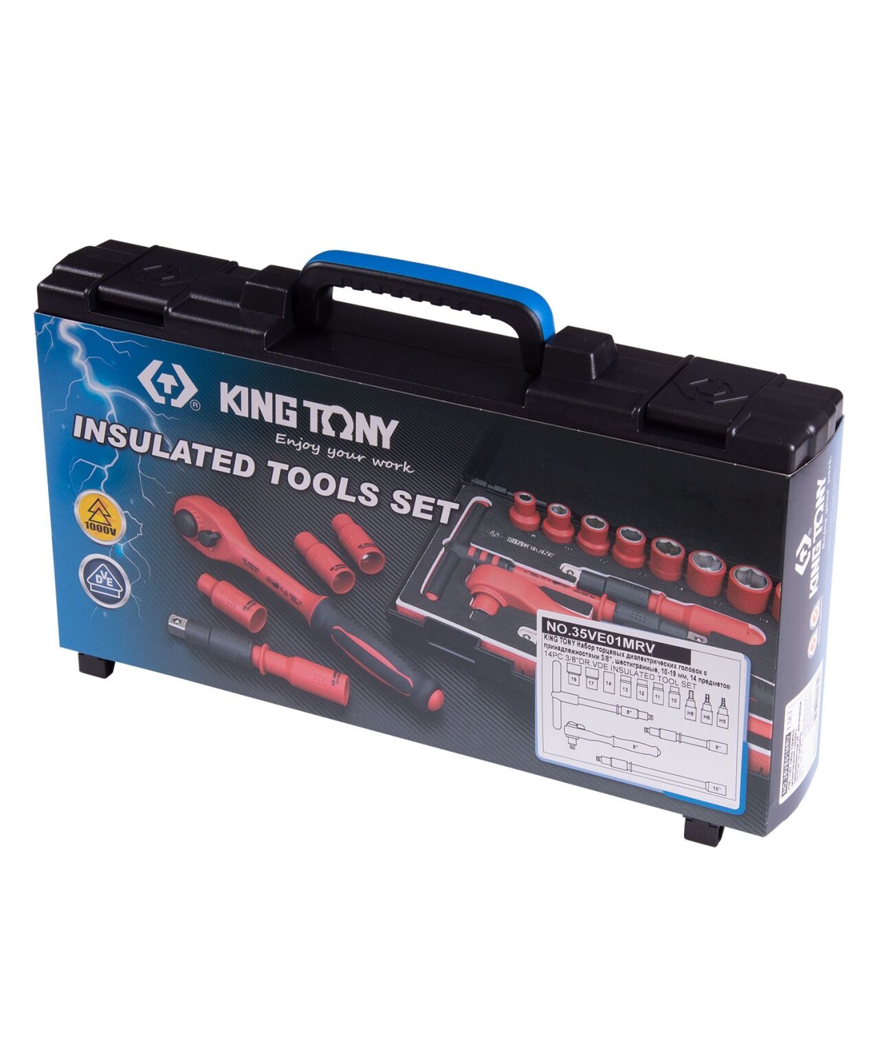 Набор торцевых диэлектрических головок с принадлежностями King Tony 35VE01MRV 3/8", шестигранные, 10-19 мм, 14 предметов
