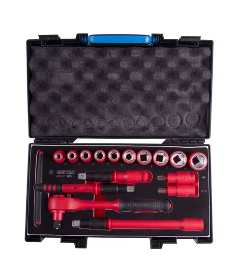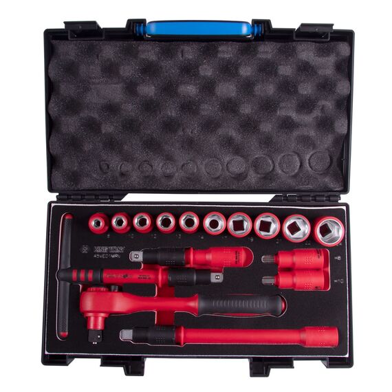 Набор торцевых диэлектрических головок с принадлежностями King Tony 45VE01MRV 1/2", шестигранные, 8-24 мм, 16 предметов
