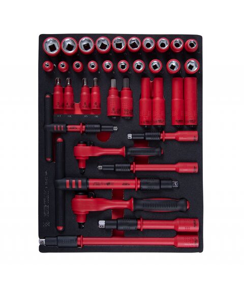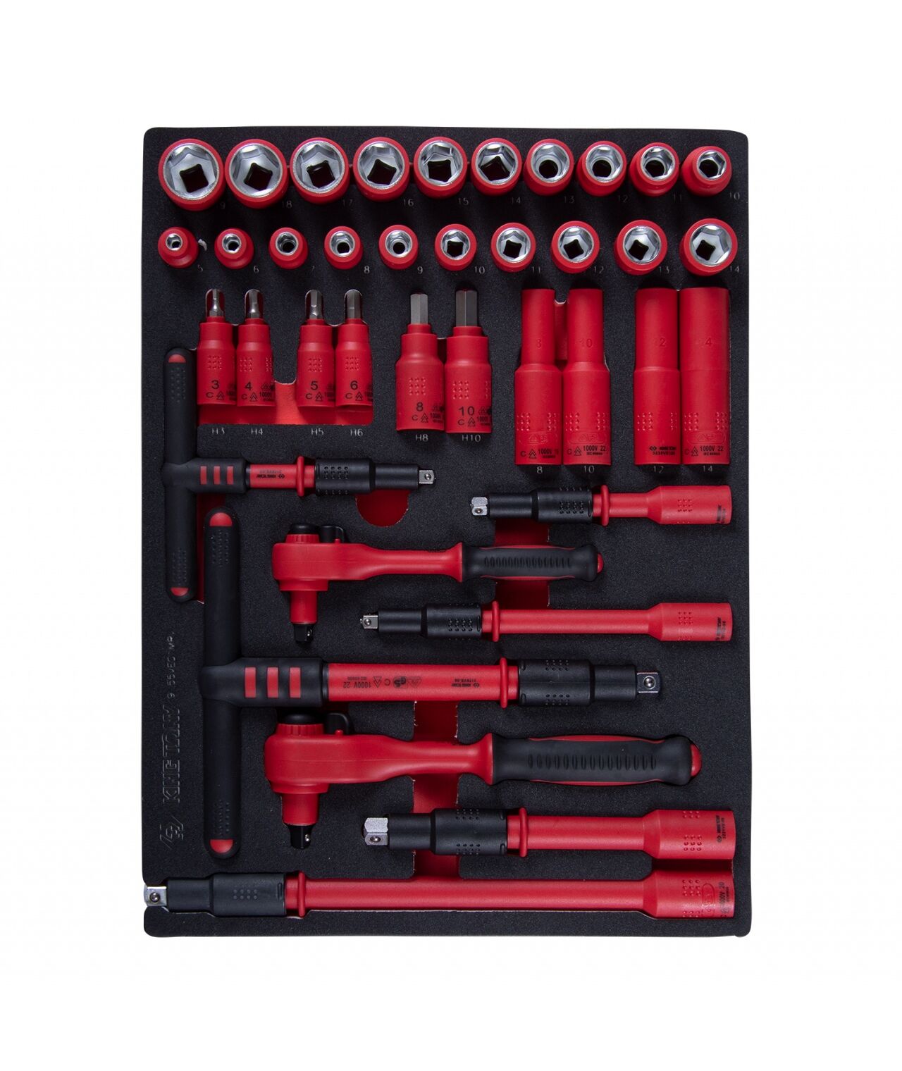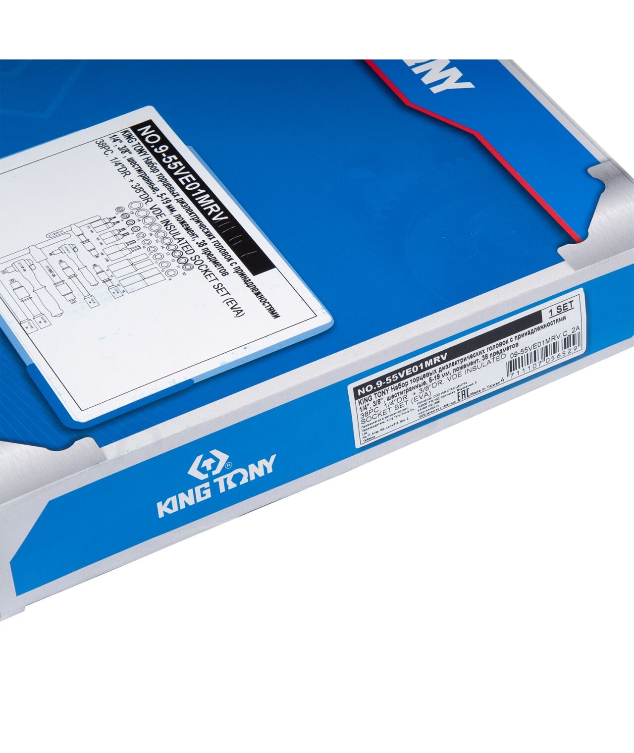 Набор торцевых диэлектрических головок с принадлежностями King Tony 9-55VE01MRV 1/4", 3/8", шестигранные, 5-19 мм, ложемент, 38 предметов