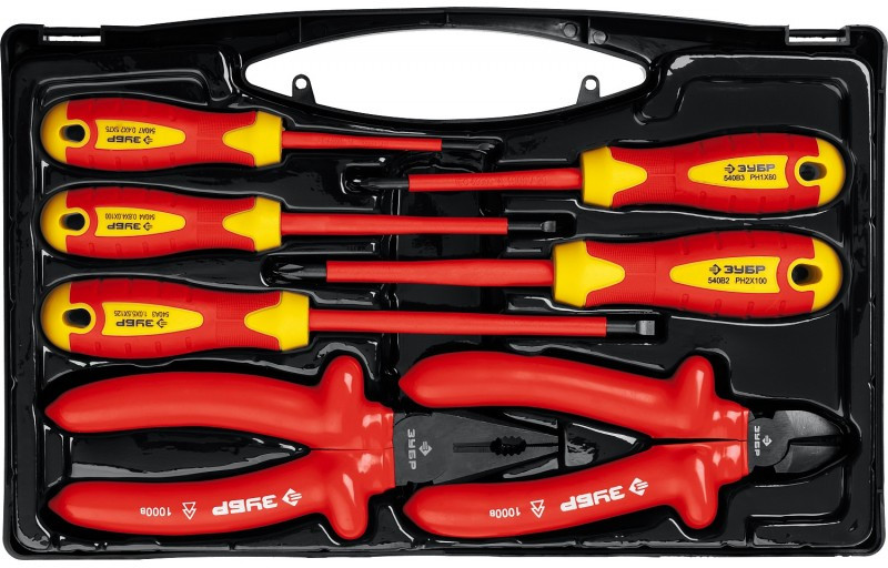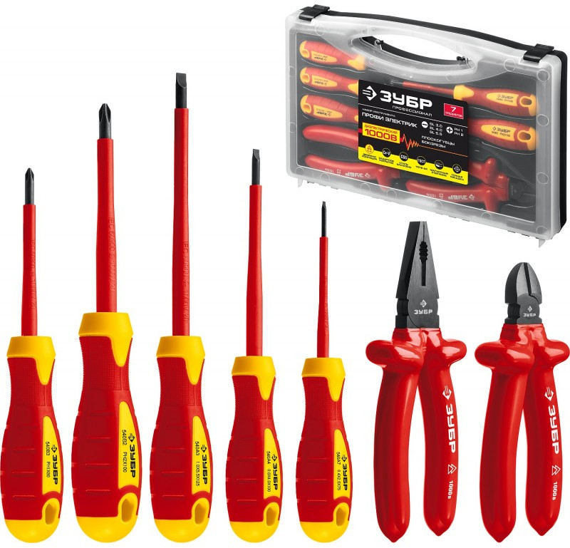 Набор Зубр Профессионал 2214-H7 губцевый инструмент, диэлектрический, высоковольтный до ~1000В, маслобензостойкая рукоятка, 7 предметов [2214-H7_z01]