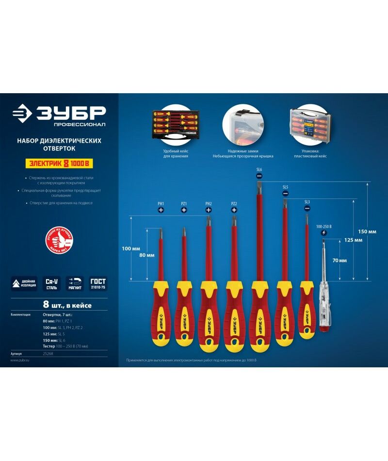 Набор диэлектрических отверток Зубр Профессионал 8 предметов [25268]
