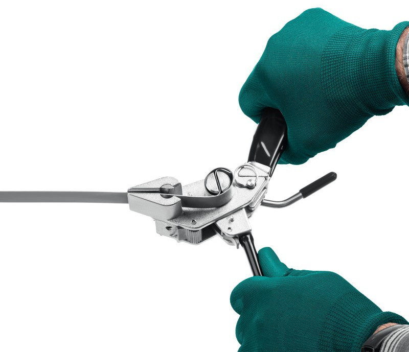 Инструмент для натяжения стальной ленты на опорах ВЛИ и крепежа тары. 2 в 1 для надёжной стяжки и обрезки.