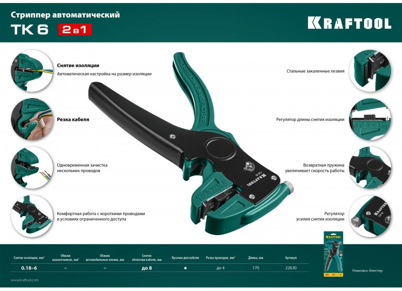 - Съемник изоляции, мм2: 0.18 - 6.0