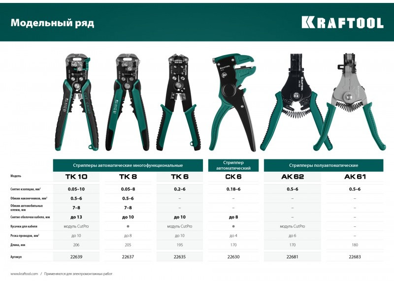 - Инструменты для снятия изоляции KRAFTOOL, изготовлены из высококачественной стали с закалкой рабочих поверхностей, предназначены для профессионального применения. Обладают повышенным ресурсом, обеспечивают наивысшее качество электромонтажных работ.