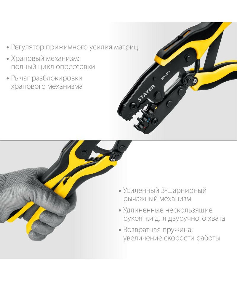 Набор пресс-клещи STAYER Professional SP-4M 4 матрицы, в сумке чехле [45445]