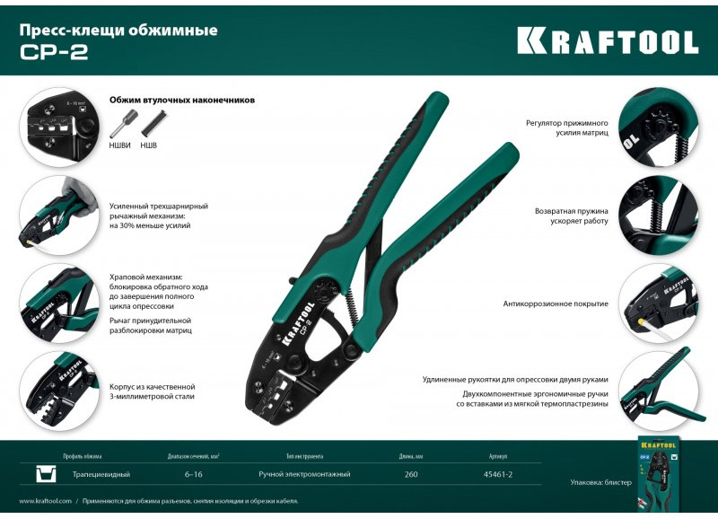 Пресс-клещи KRAFTOOL CP-2 для втулочных наконечников 6 - 16 мм.кв [45461-2]