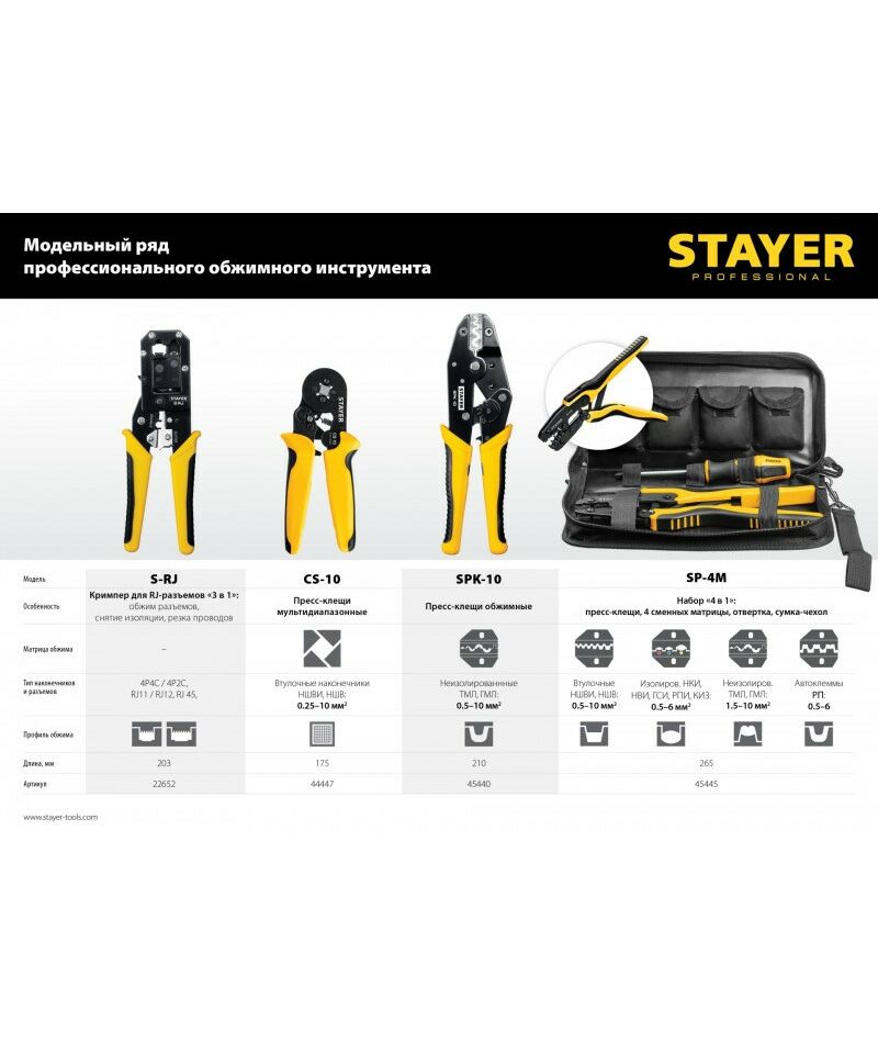 Пресс-клещи STAYER Professional CS-10 для втулочных наконечников 0.25 - 10 мм.кв [44447]