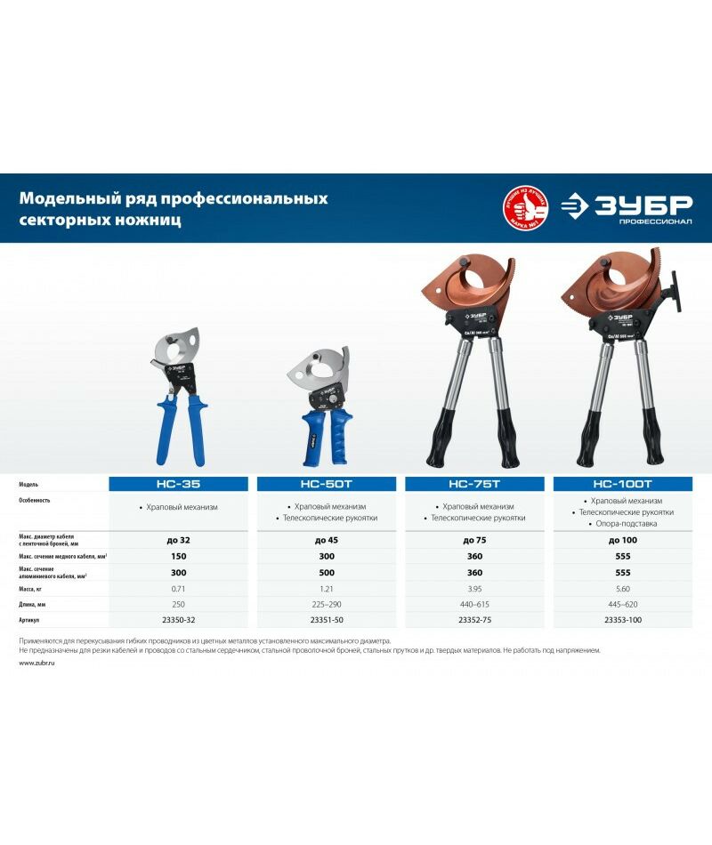 - Кабелерезы ЗУБР изготовлены из высококачественной стали, предназначены для профессионального применения. Обладает повышенным ресурсом, обеспечивает высокое качество электромонтажных работ.