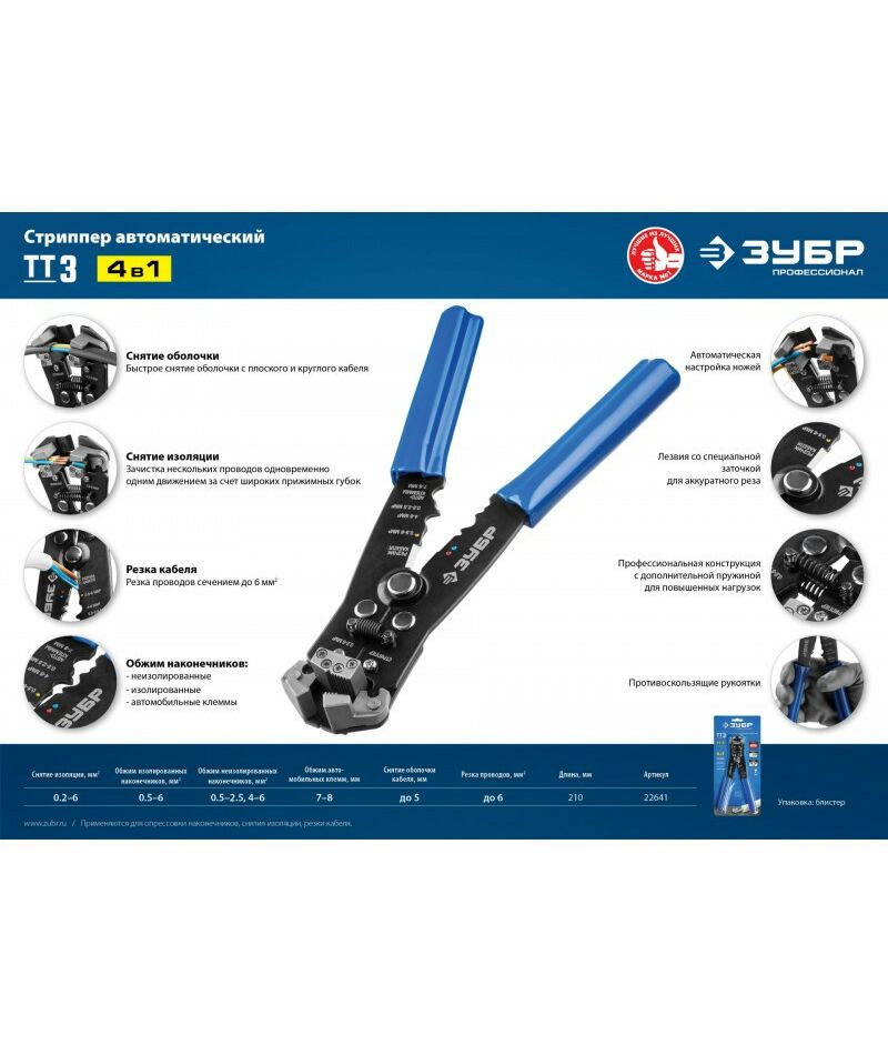 Стриппер автоматический многофункциональный Зубр Профессионал ТТ-3 0.2 - 6 мм2 [22641]