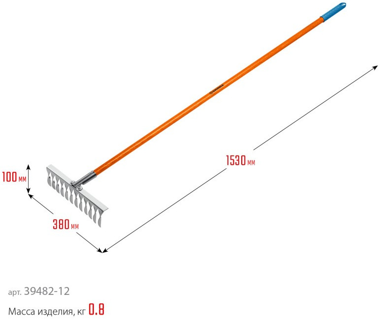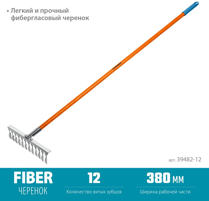 - Черенок из фибергласса обладает высокой прочностью и лёгким весом, не выскальзывает из рук.