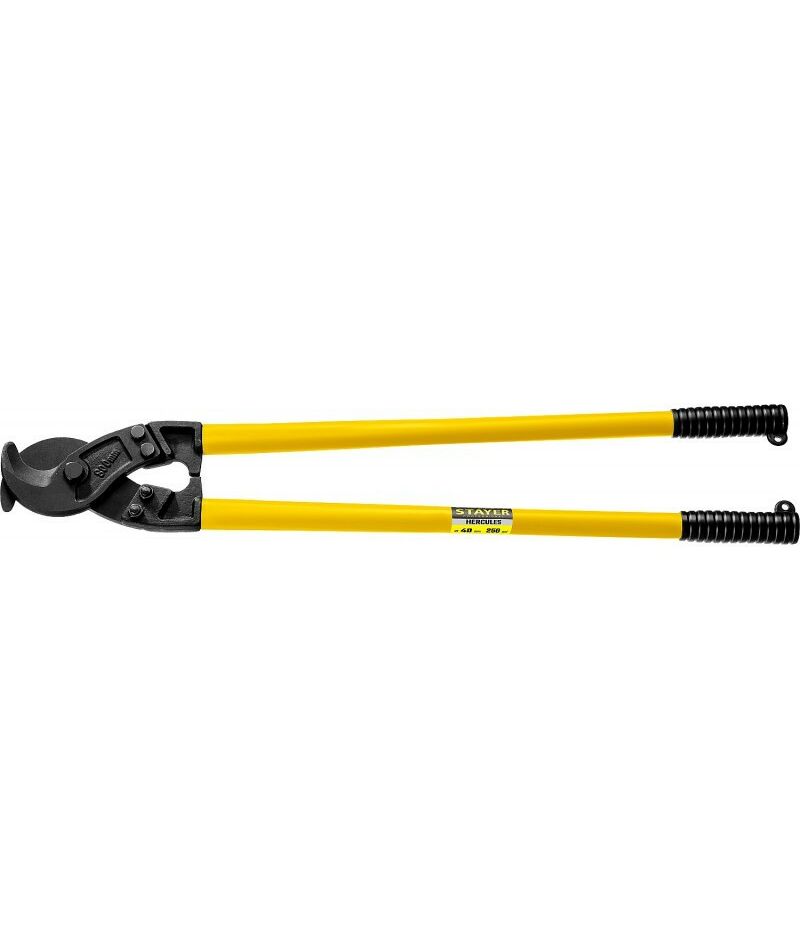 Кабелерезы STAYER изготовлены из высококачественной стали и предназначены для перекусывания неармированного одножильного или многожильного кабеля из цветных металлов (Cu + Al) без деформации и замятия краев. Максимальный диаметр кабеля 25мм.
