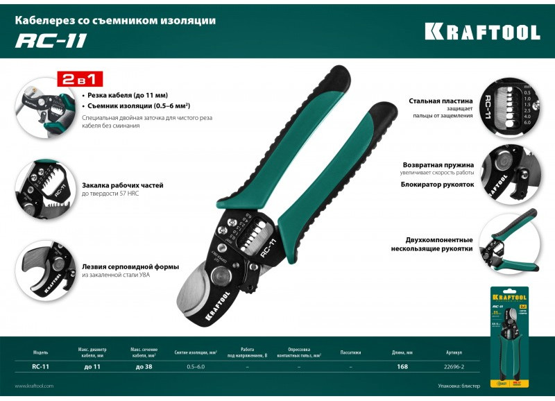 Кабельные ножницы 2 в 1 KRAFTOOL RC-11 [22696-2]