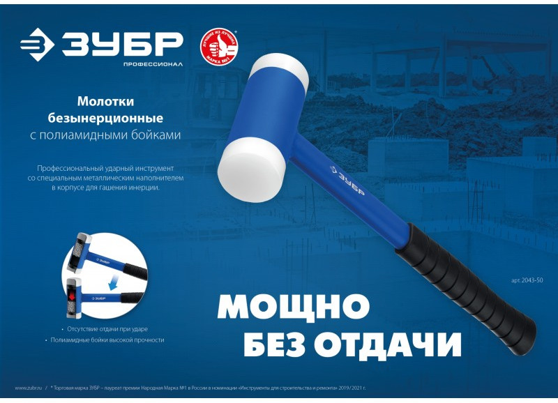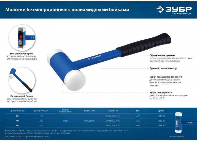 Безынерционный молоток с полиамидными бойками Зубр Профессионал БМП-35 мм [2043-35]