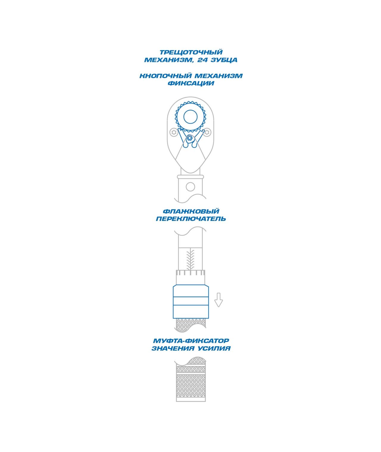 | Трещоточный механизм | 24 зубца |