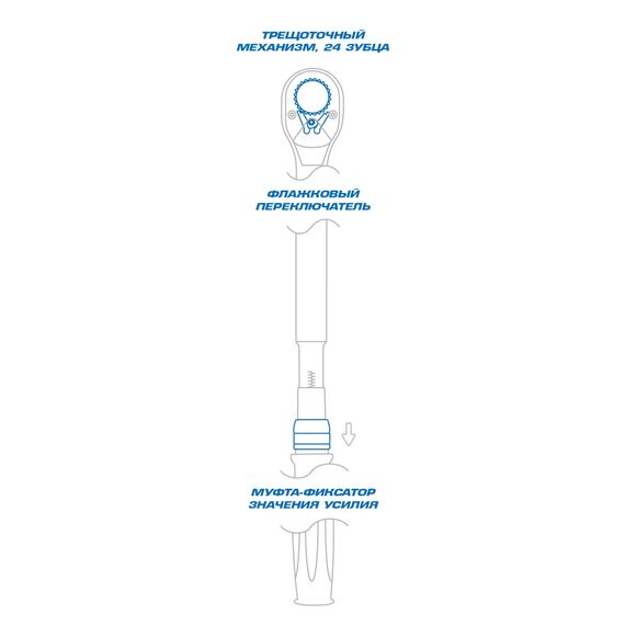 • Механизм фиксации установленного значения срабатывания ключа исключает случайный проворот рукоятки