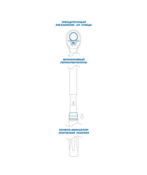 • Механизм фиксации установленного значения срабатывания ключа исключает случайный проворот рукоятки
