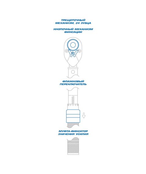 • Механизм фиксации установленного значения срабатывания ключа исключает случайный проворот рукоятки;