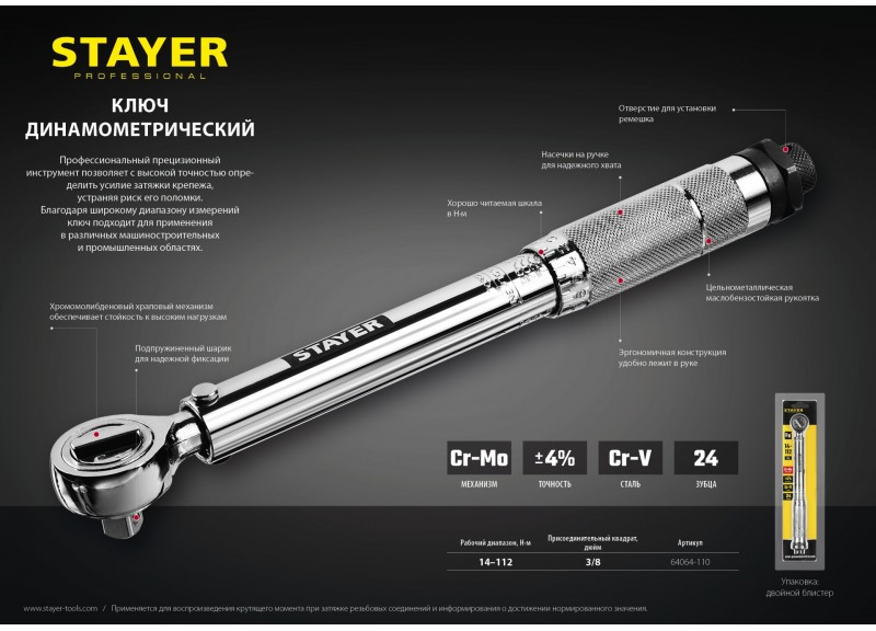 Описание STAYER Professional 3/8" 14 - 112 Нм