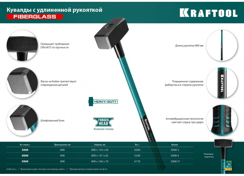 Кувалда с фиберглассовой удлинённой рукояткой KRAFTOOL Fiberglass 4 кг [2008-4]