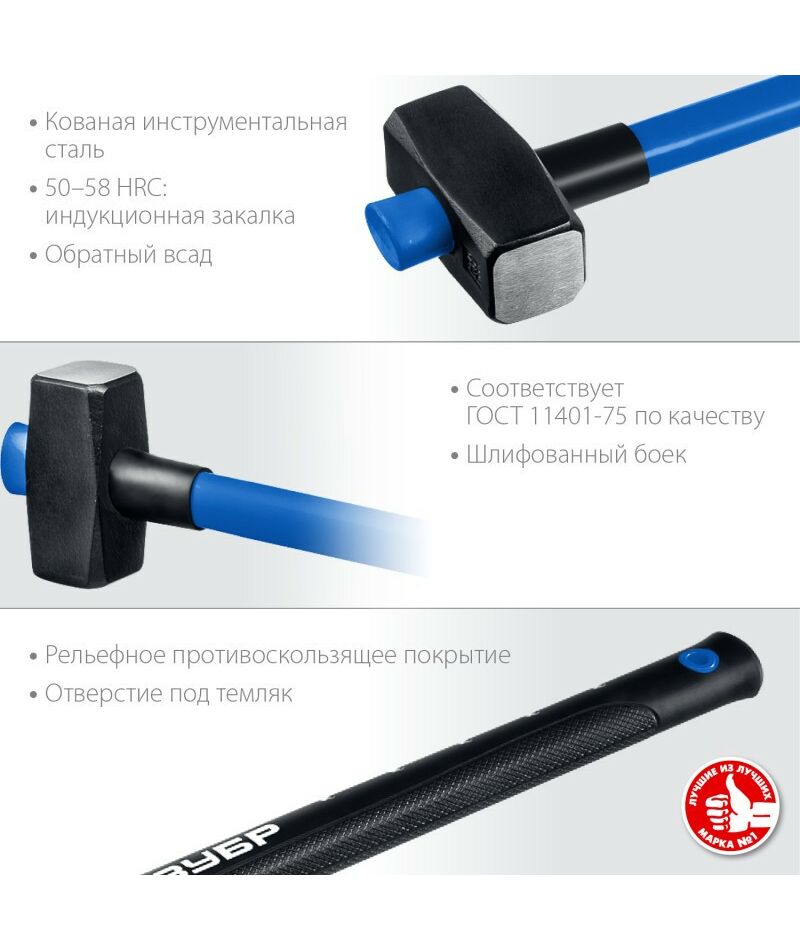 Профессиональная кувалда ЗУБР оснащена особопрочной фибергласовой рукояткой. АВТ - технология позволяет существенно снизить вибрации, возникающие во время удара, что делает работу с инструментом более комфортной. Соответствует требованиям ГОСТ 2310-77.