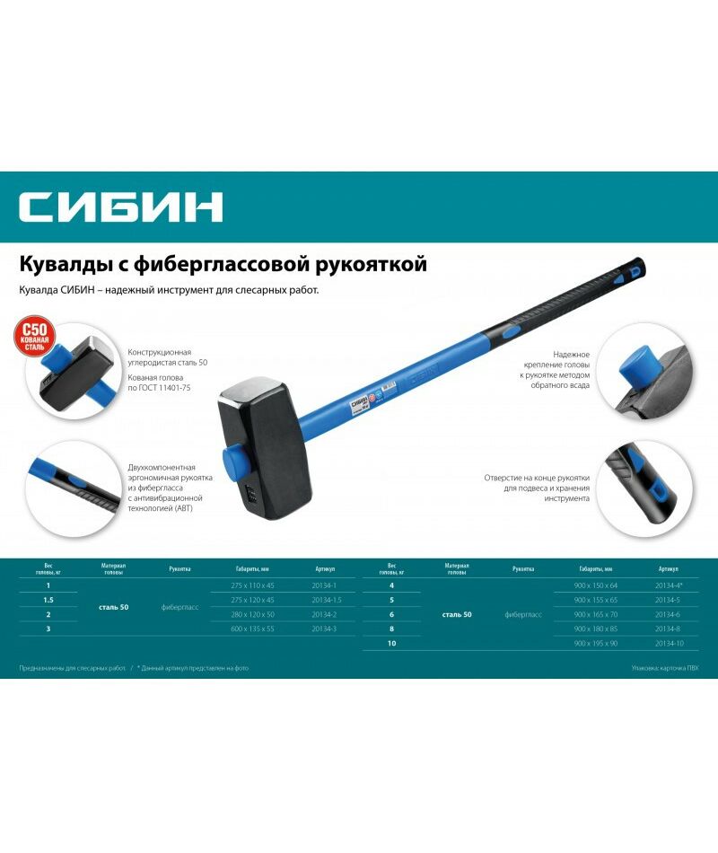 Кувалда с удлинённой фиберглассовой рукояткой СИБИН 6 кг [20134-6]