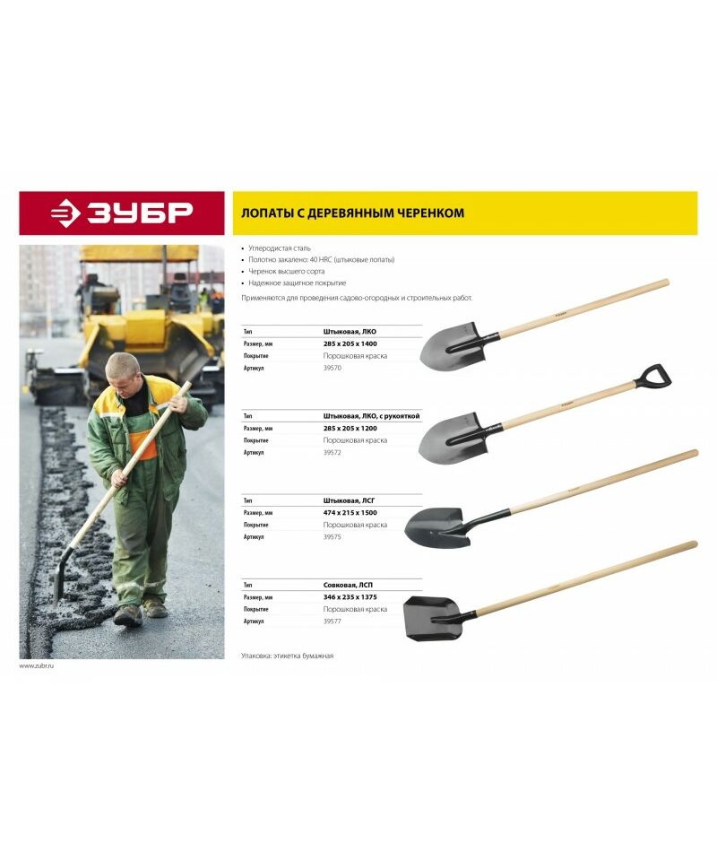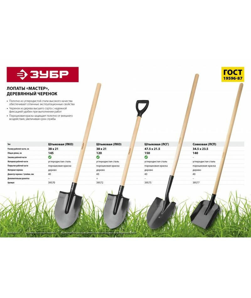 Совковая лопата Зубр Мастер 346 х 235 х 1375 мм полотно 1.6 мм, закалено, дерев. черенок высш. сорт, тип ЛСП [39577]