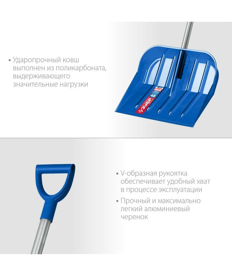 Снеговая лопата Зубр Профессионал АНГАРА ковш 46 см морозостойкий поликарбонат, ударопрочная, легкий черенок из алюминия, V-ручка [39981]