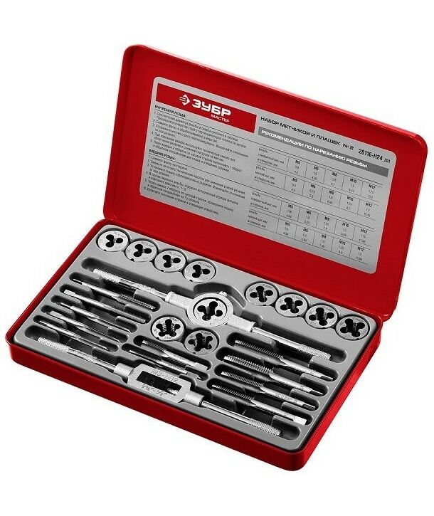 Набор метчиков и плашек Зубр МАСТЕР 28116-H24_z01 сталь 9ХС, 24 предмета