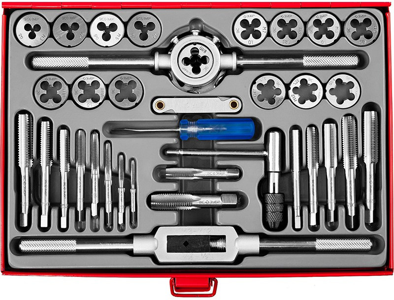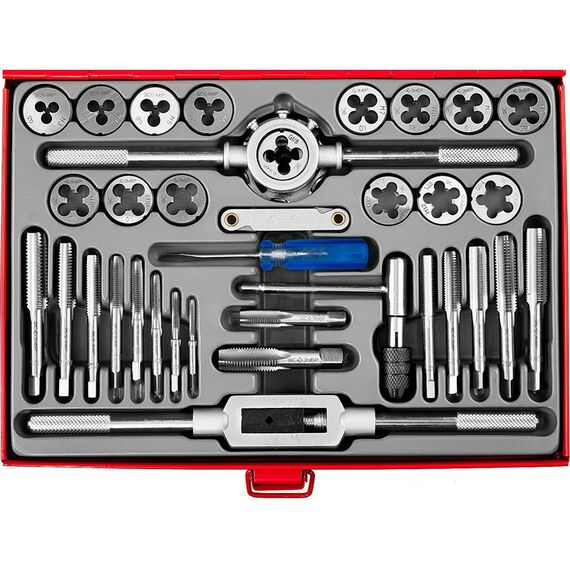 Набор метчиков и плашек Зубр МАСТЕР 28117-H35_z01 сталь 9ХС, 35 предметов