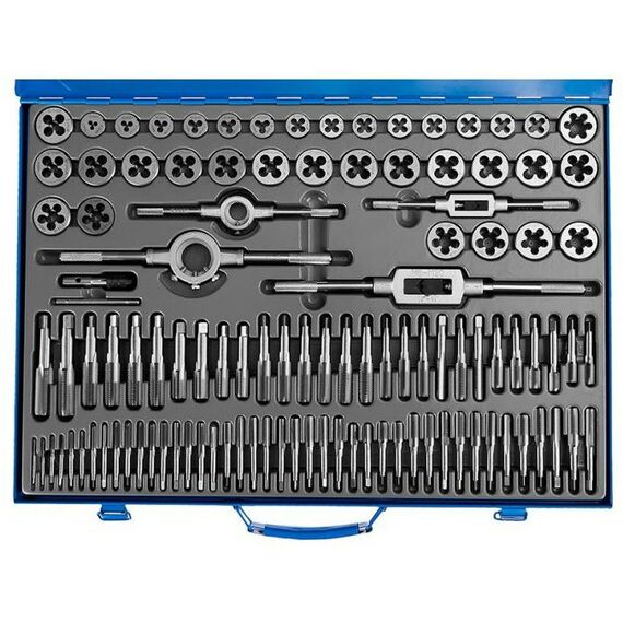 - Наборы с металорежущим инструментом оптимально скомпонованы для решения большинства задач по нарезанию резьбы. Высокое качество инструментов, входящих в набор, позволяет получить максимально качественный результат даже в самых трудных условиях