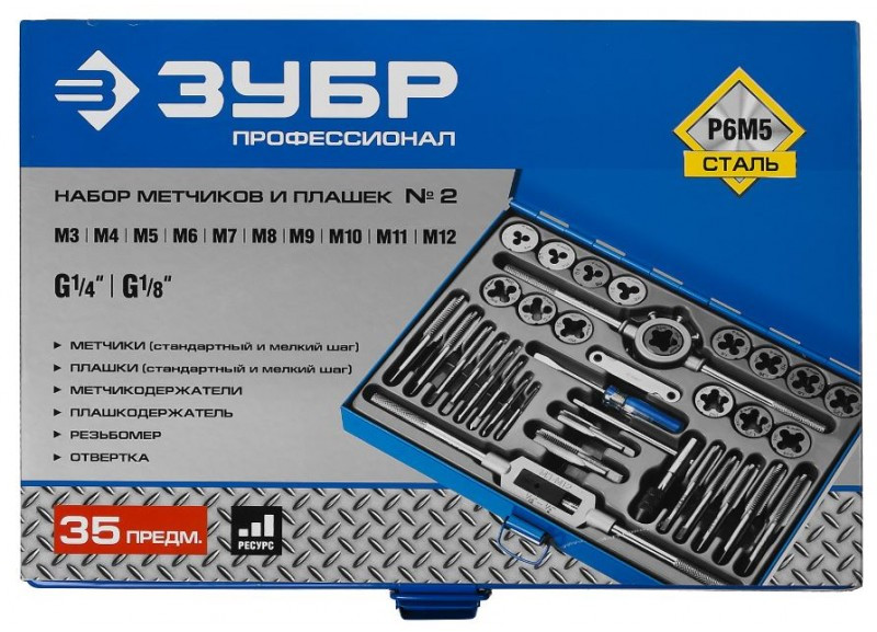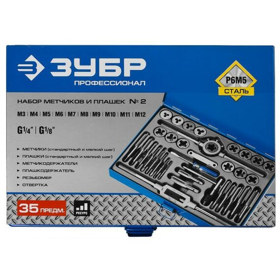 Набор метчиков и плашек Зубр ПРОФЕССИОНАЛ 28110-H35 сталь Р6М5, 35 предметов