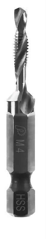Серия "Эксперт". Сверло - метчик комбинированное предназначено для сверления отверстия и нарезания резьбы при помощи дрели. Для обработки листовых материалов и профилей из легированных и не легированных сталей с пределом прочности на растяжение до 900 Н/мм2 и цветных металлов. Изготовлено из быстрорежущей стали Р6М5, шлифованное, хвостовик 1/4’’. Сверление, нарезание резьбы и зенковка производится за один рабочий проход, очистка резьбы - на обратном ходу. Резьба метрическая DIN ISO 13, правосторонняя. Допуск ISO 2 / 6Н. Боковая поверхность - затыловочная шлифовка.