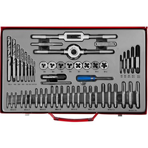 Набор метчиков и плашек Зубр МАСТЕР 28130-H52 сталь 9ХС, 52 предмета