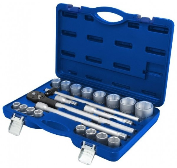 - Головки 16 шт: 19, 21, 22, 23, 24, 26, 27, 29, 30, 32, 35, 36, 38, 41, 46, 50 мм