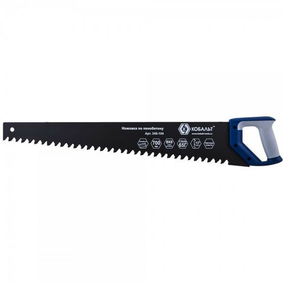 Ножовка по пенобетону Кобальт 246-104 700 мм, 1 TPI, тефлоновое покрытие твердосплавные напайки на зубья, двухкомпонентная рукоятка