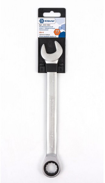Ключ комбинированный трещоточный Кобальт 642-562 19 мм, Cr-V, 1 шт, подвес