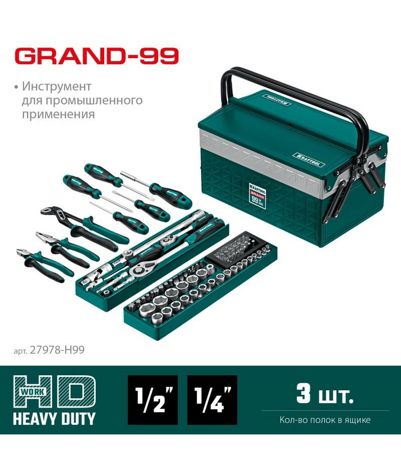 Универсальный набор инструмента KRAFTOOL GRAND-99 99 предметов, 1/2"+1/4" [27978-H99]