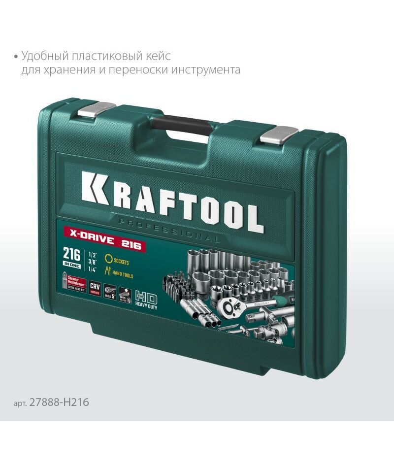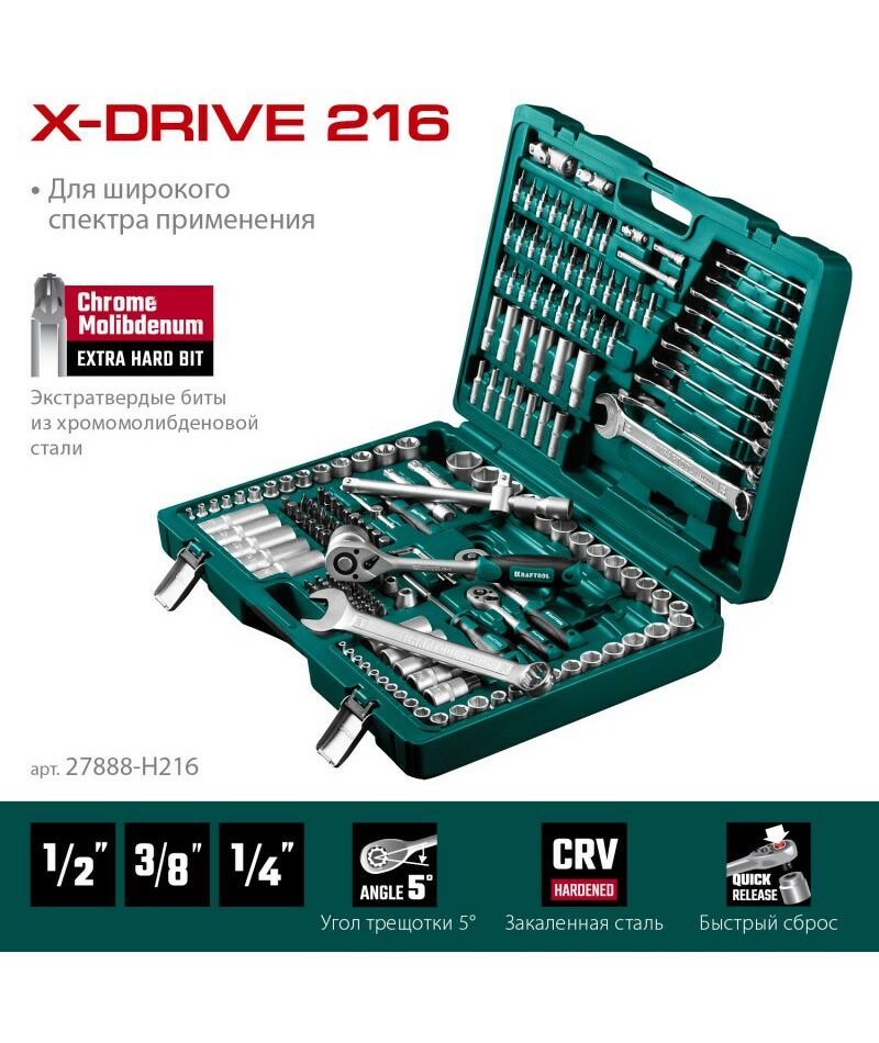 Универсальный набор инструмента KRAFTOOL X-Drive 216 216 предметов, 1/2"+3/8"+1/4" [27888-H216]