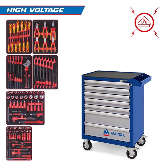 Набор инструментов King Tony 934-117AMBE "HIGH VOLTAGE" в синей тележке, 117 предметов