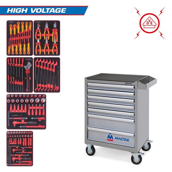 Набор инструментов King Tony 934-117AMGE "HIGH VOLTAGE" в серой тележке, 117 предметов