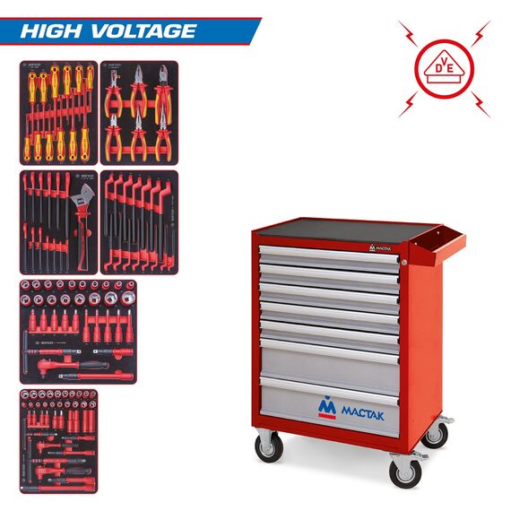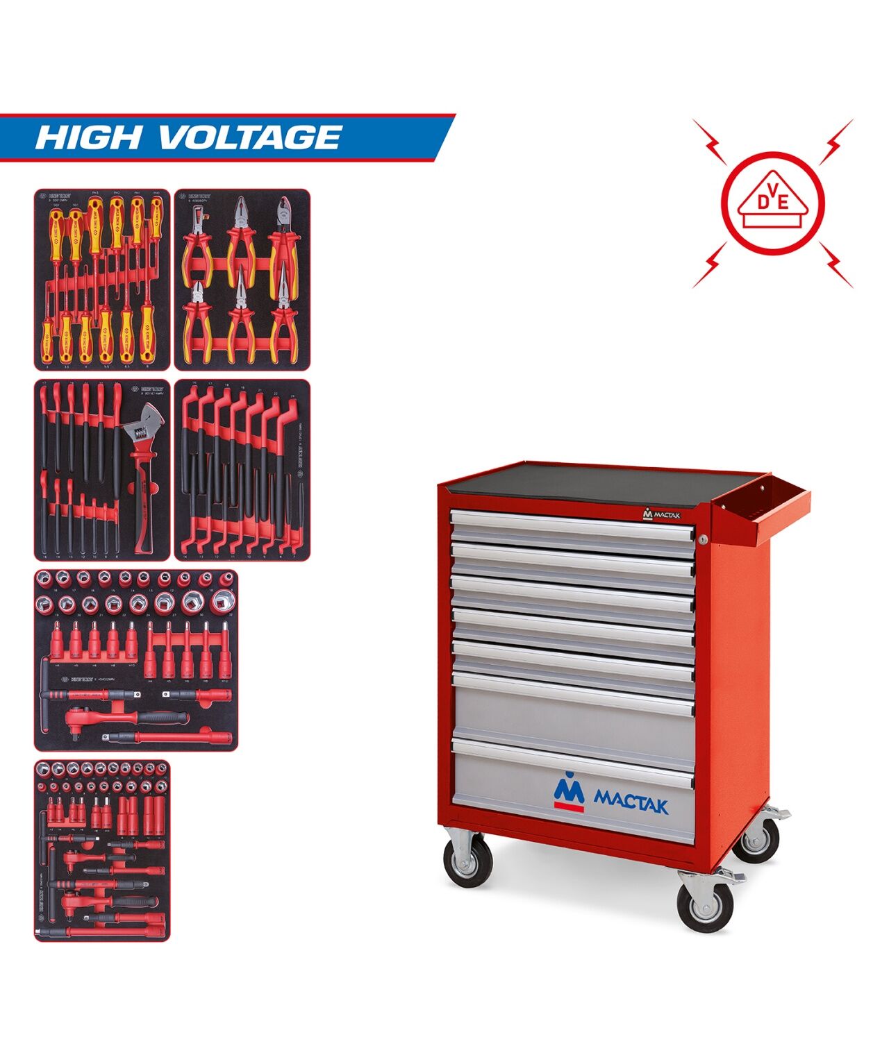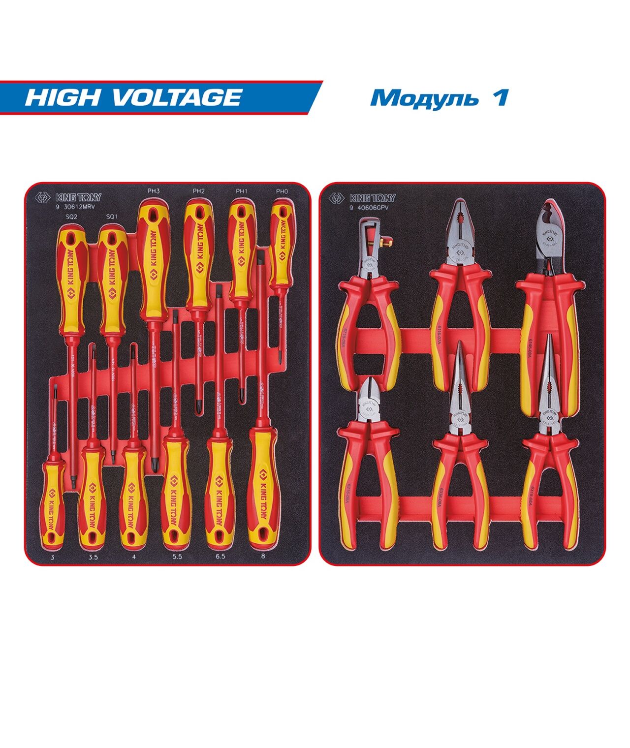Набор инструментов King Tony 934-117AMRE "HIGH VOLTAGE" в красной тележке, 117 предметов