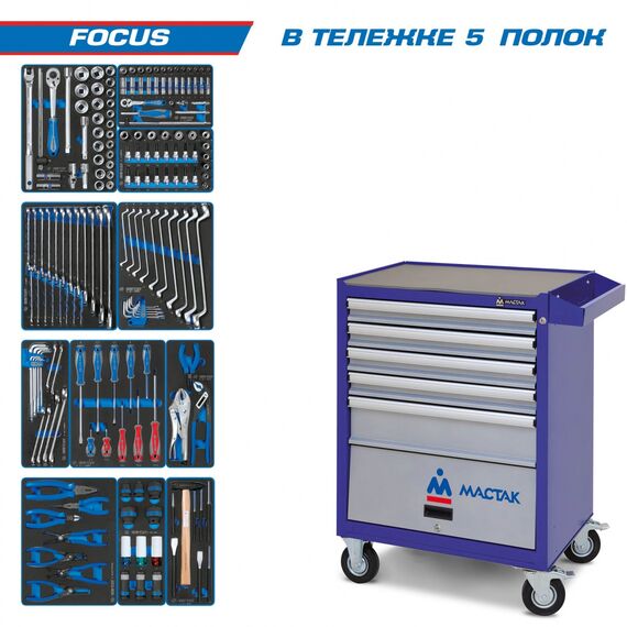 Набор инструментов King Tony 934-188AMB "FOCUS" в синей тележке, 188 предметов