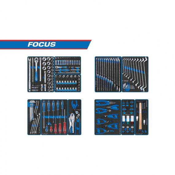 Набор инструментов King Tony 934-188MRVD "FOCUS" для тележки, 11 ложементов, 188 предметов