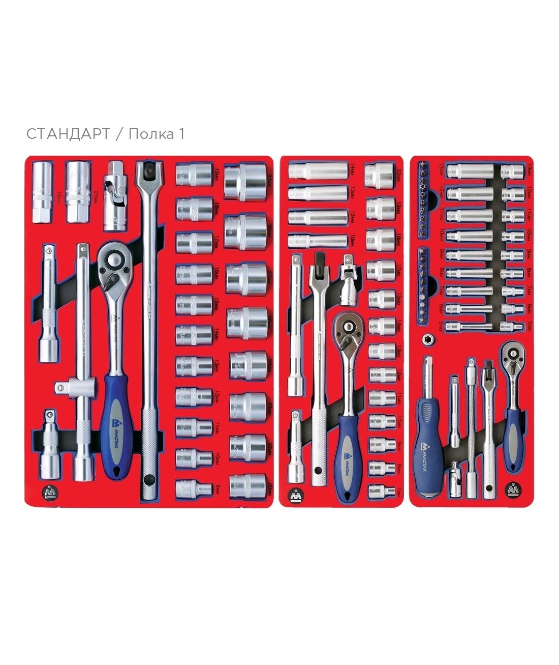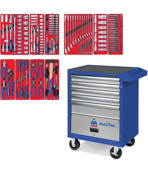 Набор инструментов МАСТАК 52-05186B "СТАНДАРТ" в синей тележке, 186 предметов [52-05186B]