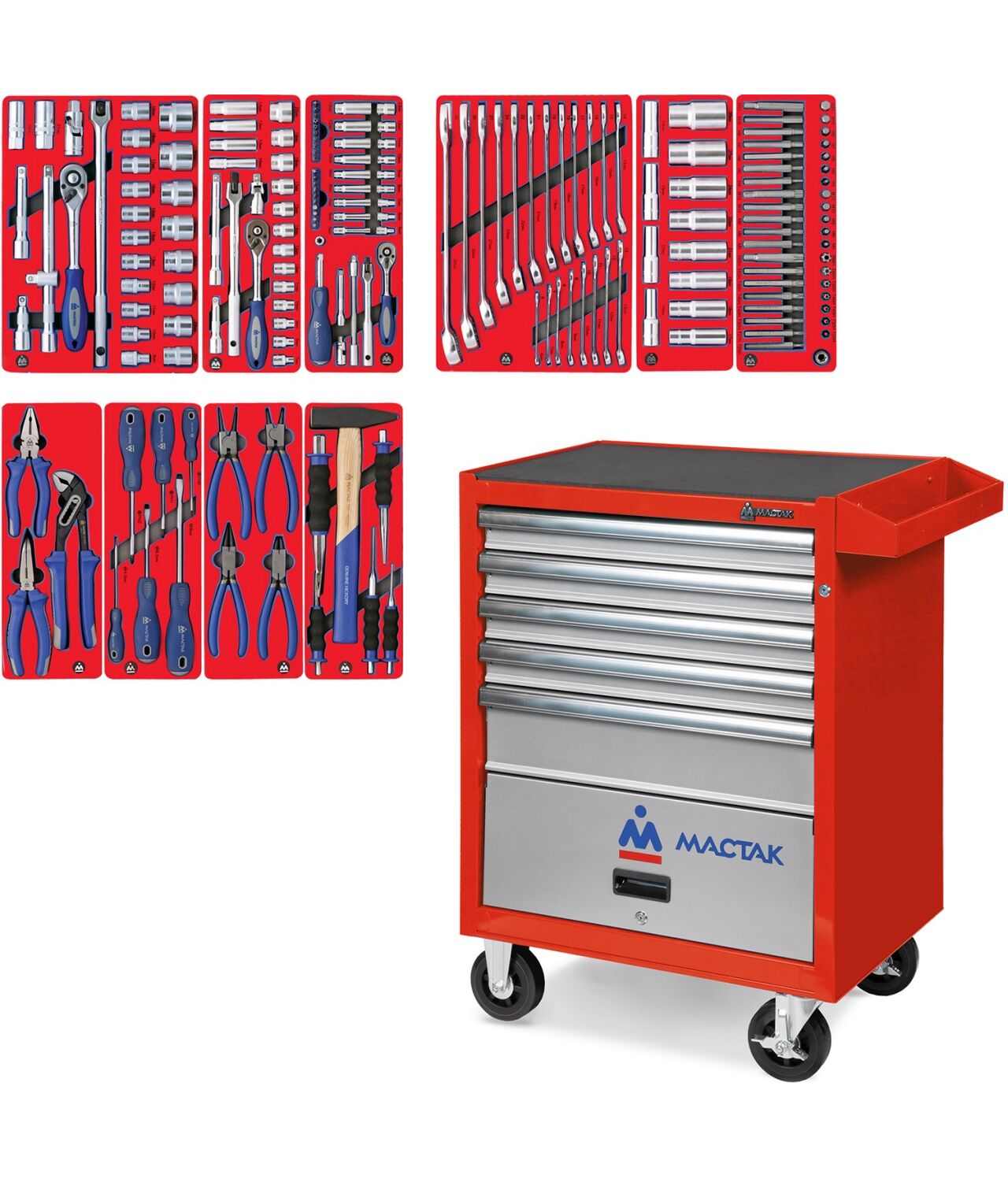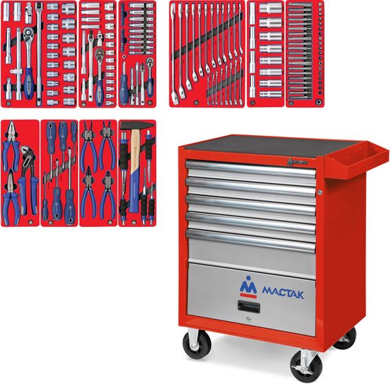 Набор инструментов МАСТАК 52-05186R "СТАНДАРТ" в красной тележке, 186 предметов