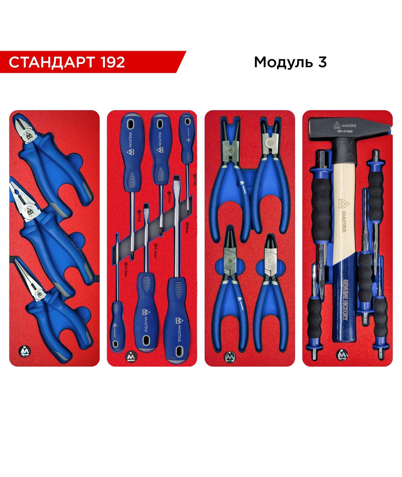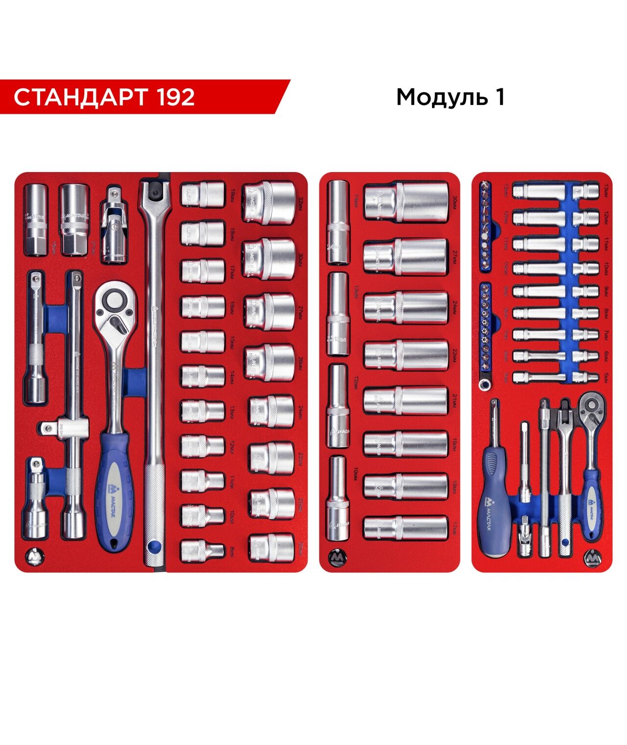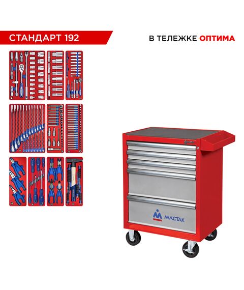 Набор инструментов МАСТАК 52-05192R 192 предмета, "СТАНДАРТ 192", в красной тележке